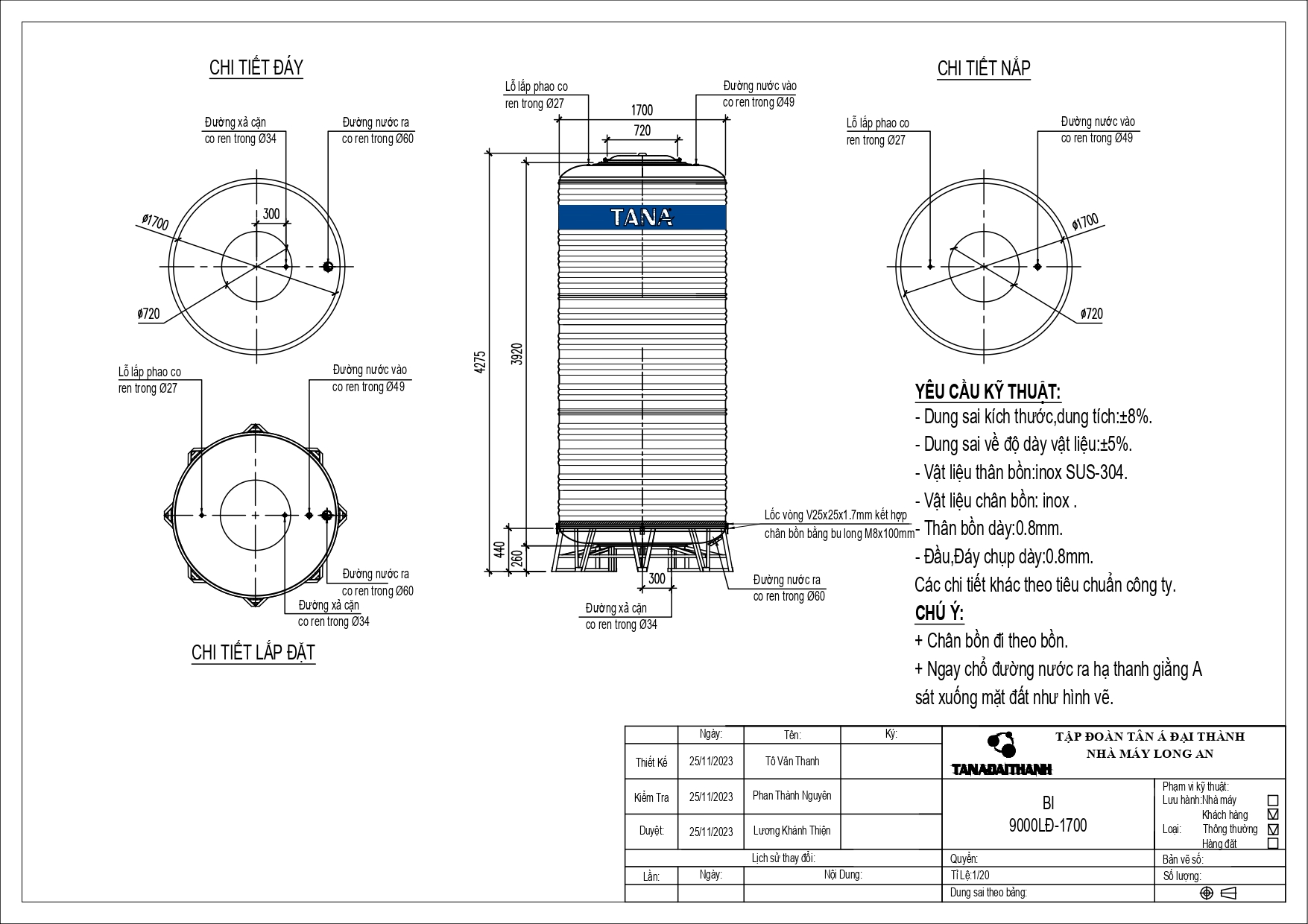 Bản vẽ bồn nước inox Tân Á 9000 lít đứng