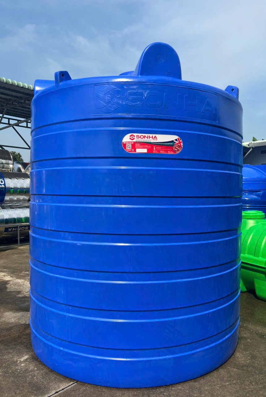- Bồn nước nhựa LLDPE: Dung tích từ 300 lít đến 10.000 lít, bảo hành 25 năm, chịu lực tốt, không phai màu.