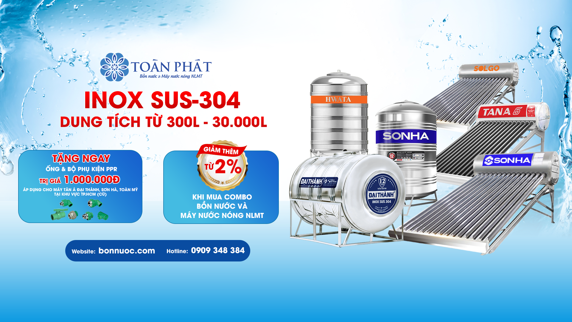 Công ty TNHH Kinh Doanh Toàn Phát là đơn vị phân phối chính hãng các sản phẩm bồn nước inox, bồn nước nhựa và máy nước nóng năng lượng mặt trời của những thương hiệu hàng đầu Việt Nam như Tân Á Đại Thành, Sơn Hà, Đại Thành, Hwata, Toàn Mỹ…