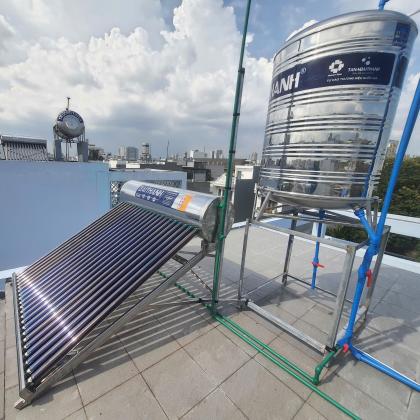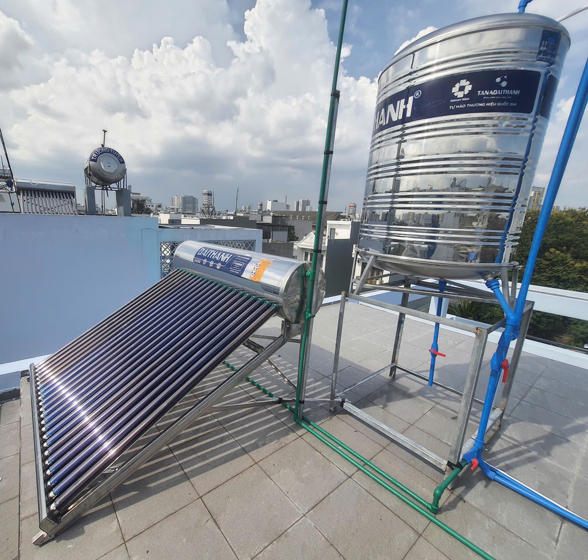 Với những công trình không có bồn nước lạnh, việc lắp bình nước phụ là giải pháp cần thiết để cấp nước cho máy nước nóng năng lượng mặt trời, giúp hệ thống hoạt động ổn định, nước chảy đều và an toàn khi sử dụng.