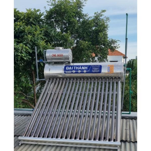 - Máy nước nóng năng lượng mặt trời Đại Thành được sản xuất theo công nghệ Châu Âu. Đặc biệt nguyên liệu Inox SUS 304/BA và công nghệ phun sơn tĩnh điện nên rất thích hợp các khu vực có khí hậu đại dương và các vùng có độ PH cao.