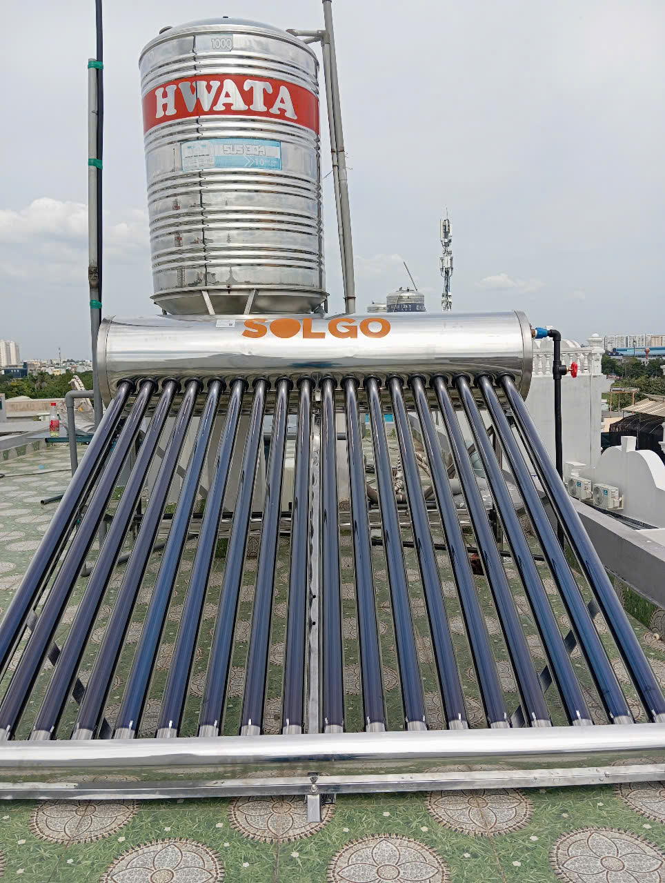 - Máy nước nóng năng lượng mặt trời Toàn Mỹ SOLGO được sản xuất theo công nghệ Châu Âu. Đặc biệt nguyên liệu Inox SUS 304/BA và công nghệ phun sơn tĩnh điện nên rất thích hợp các khu vực có khí hậu đại dương và các vùng có độ PH cao.