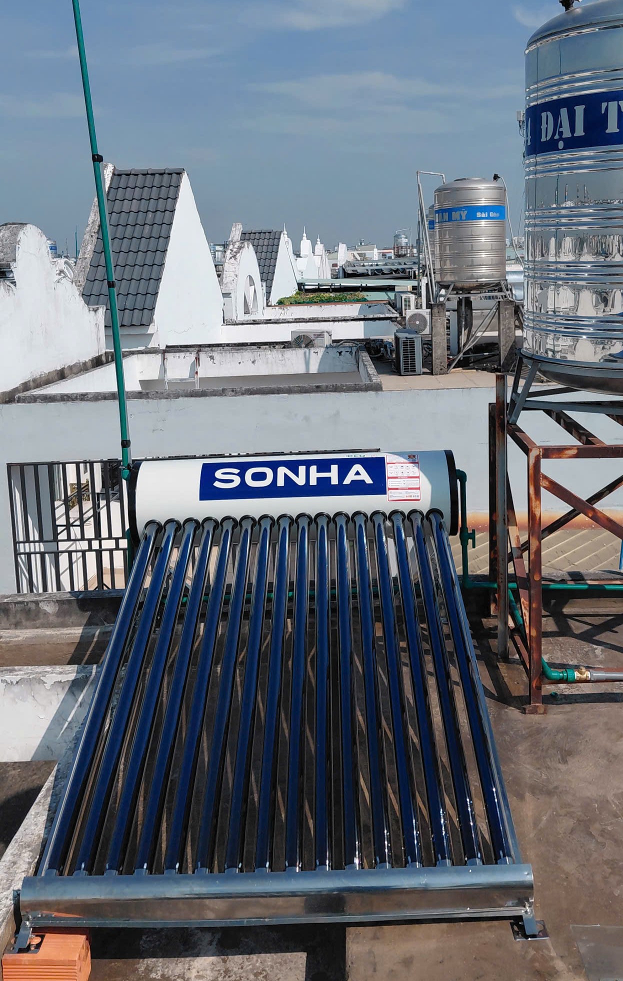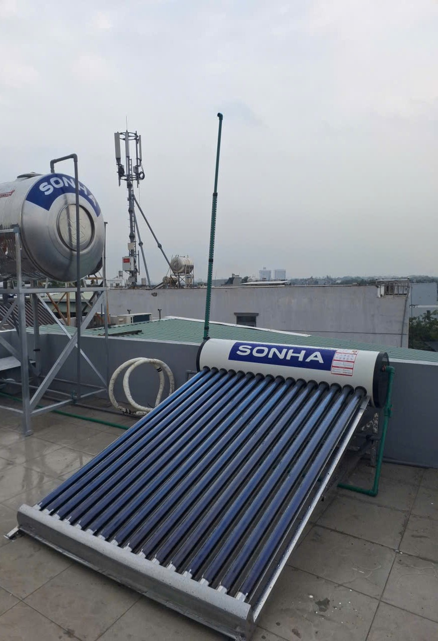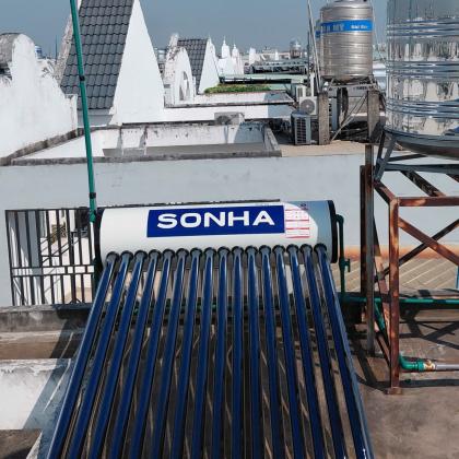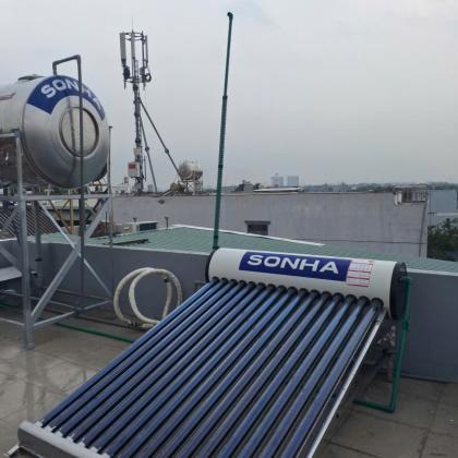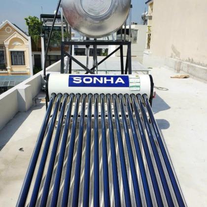 Bồn nước lạnh đặt cao hơn so với máy nước nóng năng lượng mặt trời Sơn Hà