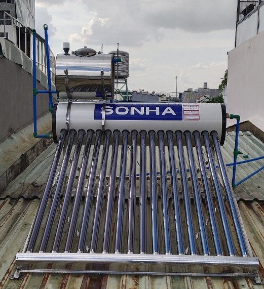 Bồn nước lạnh đặt cao hơn so với máy nước nóng năng lượng mặt trời Sơn Hà