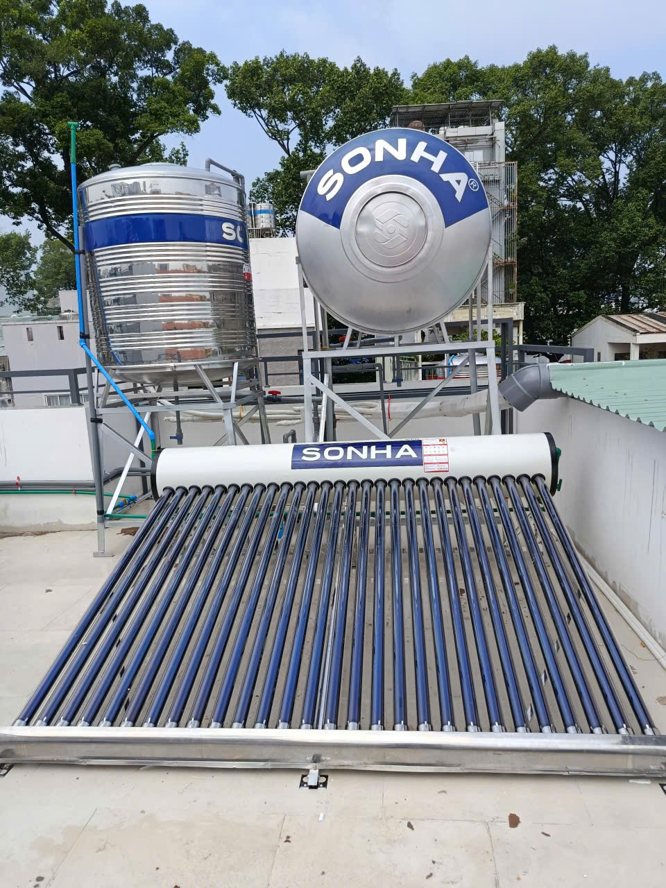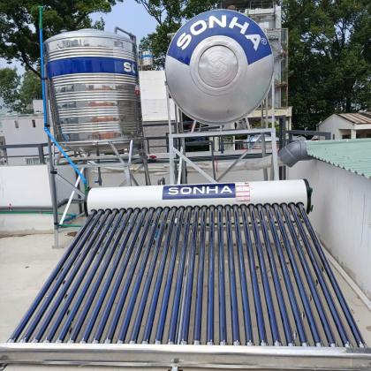 Bồn nước lạnh đặt cao hơn so với máy nước nóng năng lượng mặt trời Sơn Hà