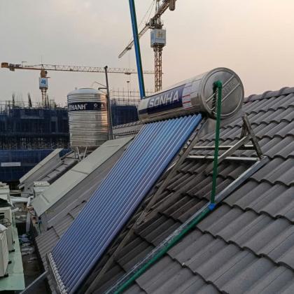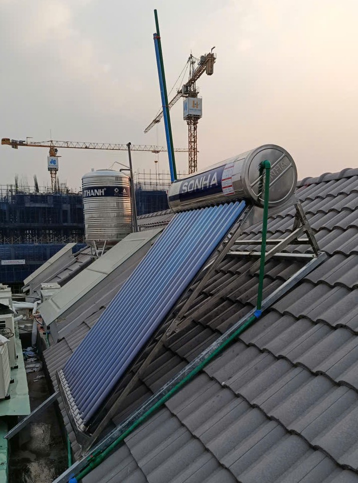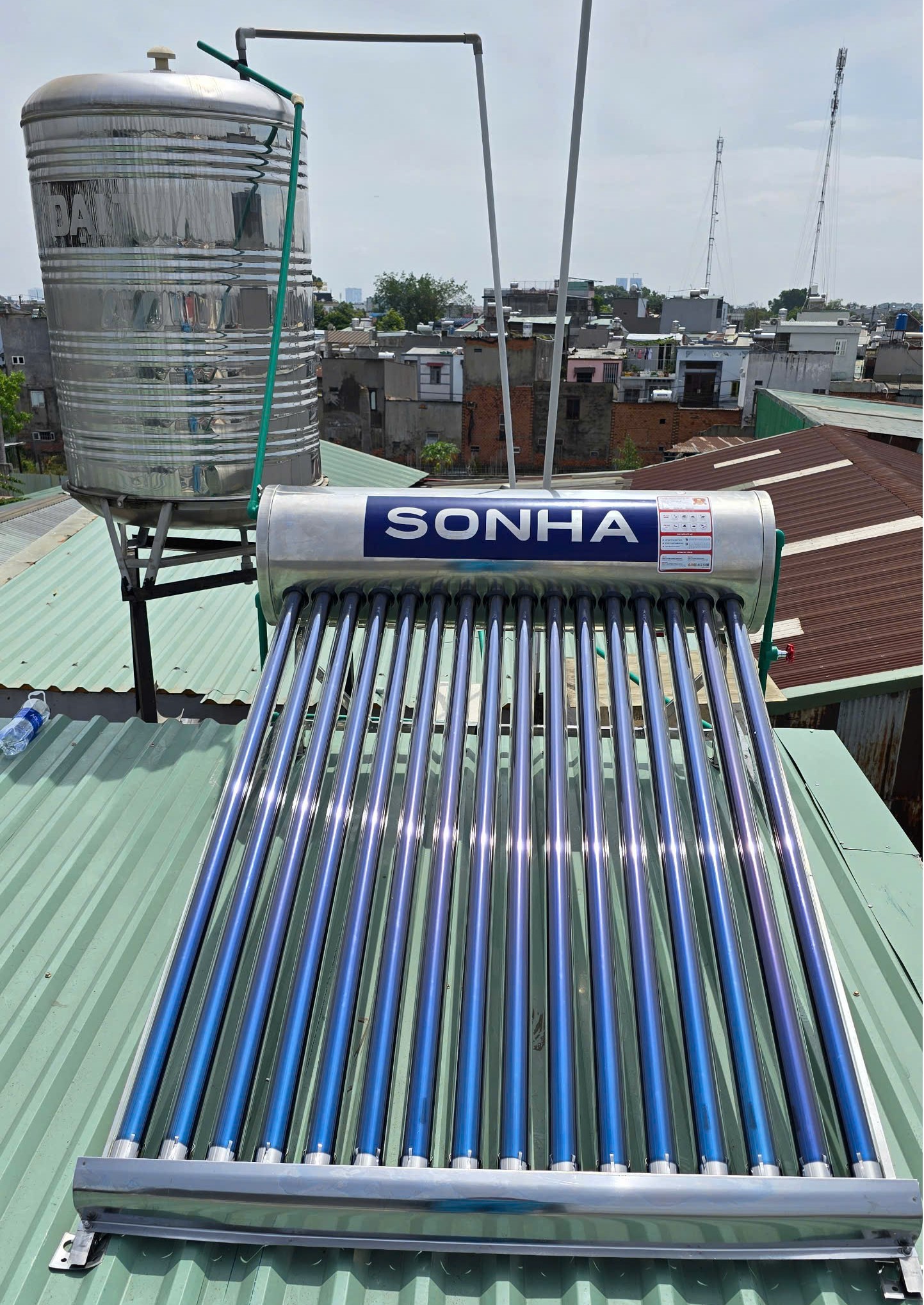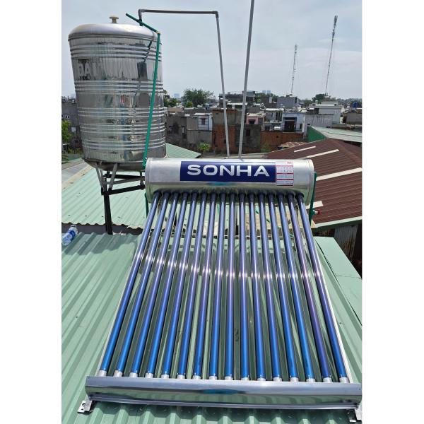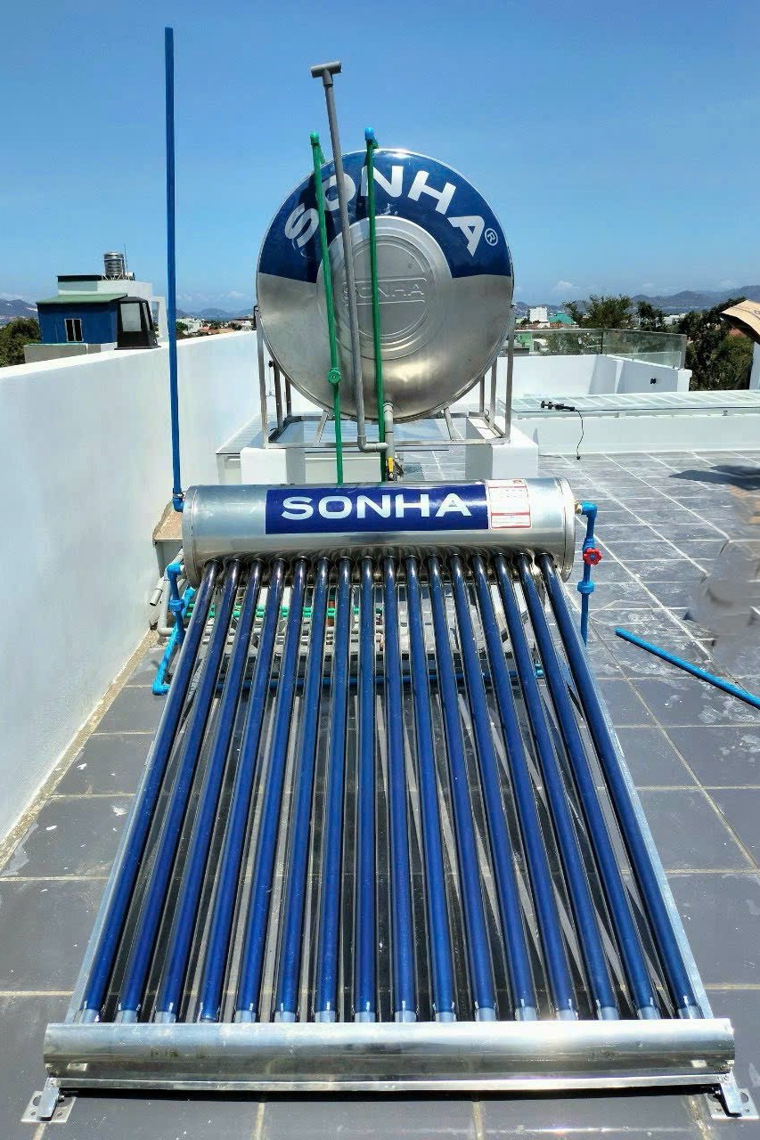 Bồn nước lạnh đặt cao hơn so với máy nước nóng năng lượng mặt trời Sơn Hà