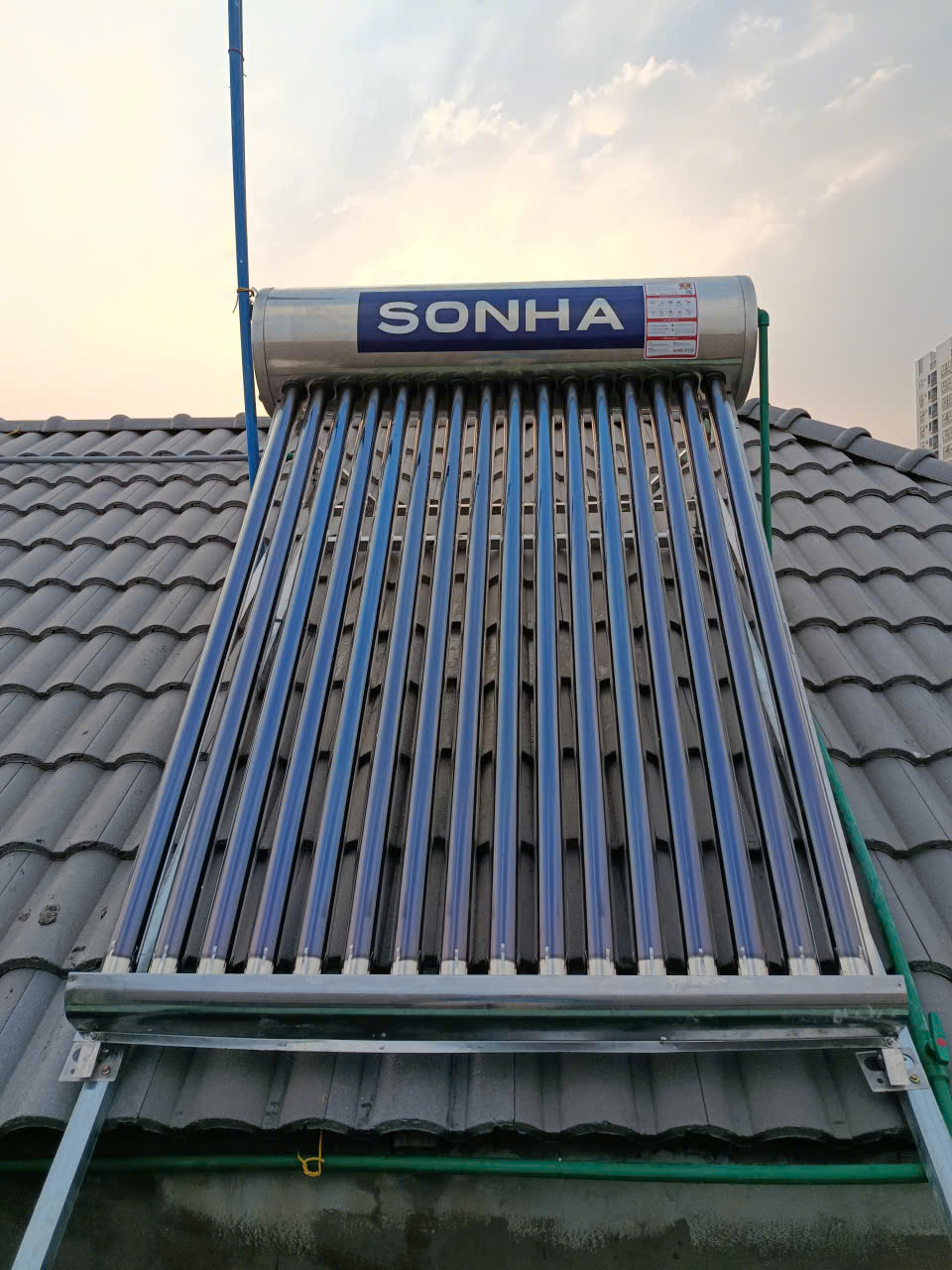 Bình nước nóng năng lượng mặt trời thái dương năng Sơn Hà hay còn gọi máy nước nóng năng lượng mặt trời Sơn Hà giá rẻ.