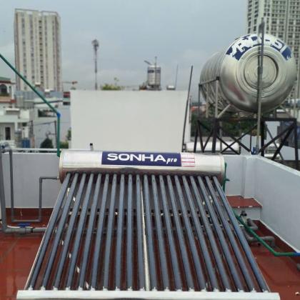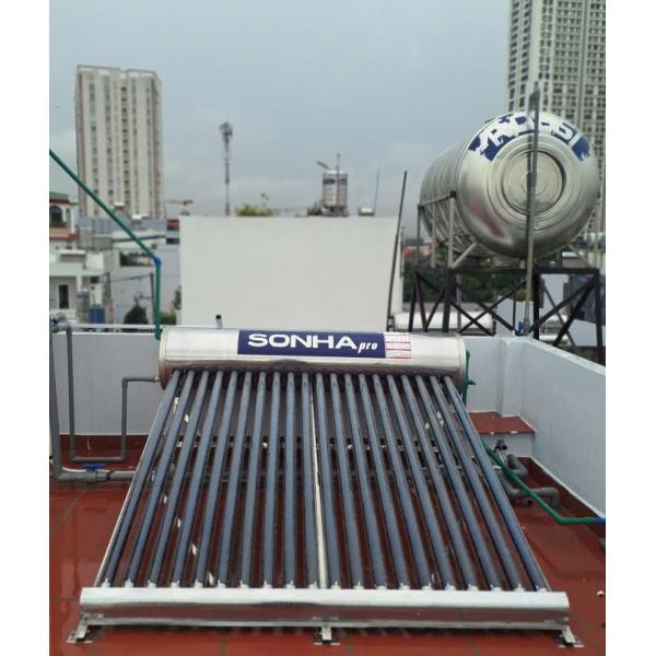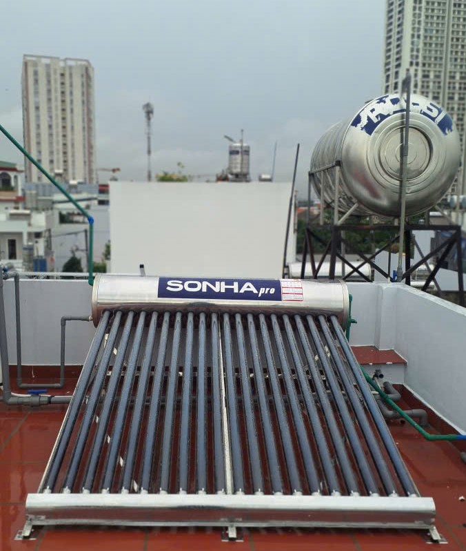 Bồn nước lạnh đặt cao hơn so với máy nước nóng năng lượng mặt trời Sơn Hà