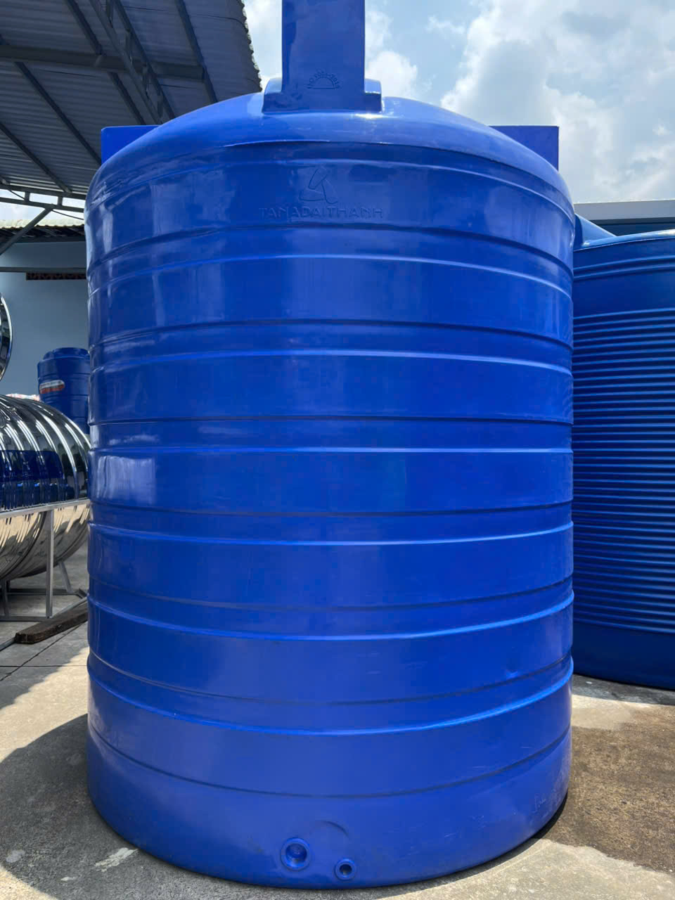 - Bồn nước nhựa: Làm từ nhựa LLDPE an toàn, bền bỉ, dung tích từ 300 lít đến 10.000 lít, bảo hành 25 năm.