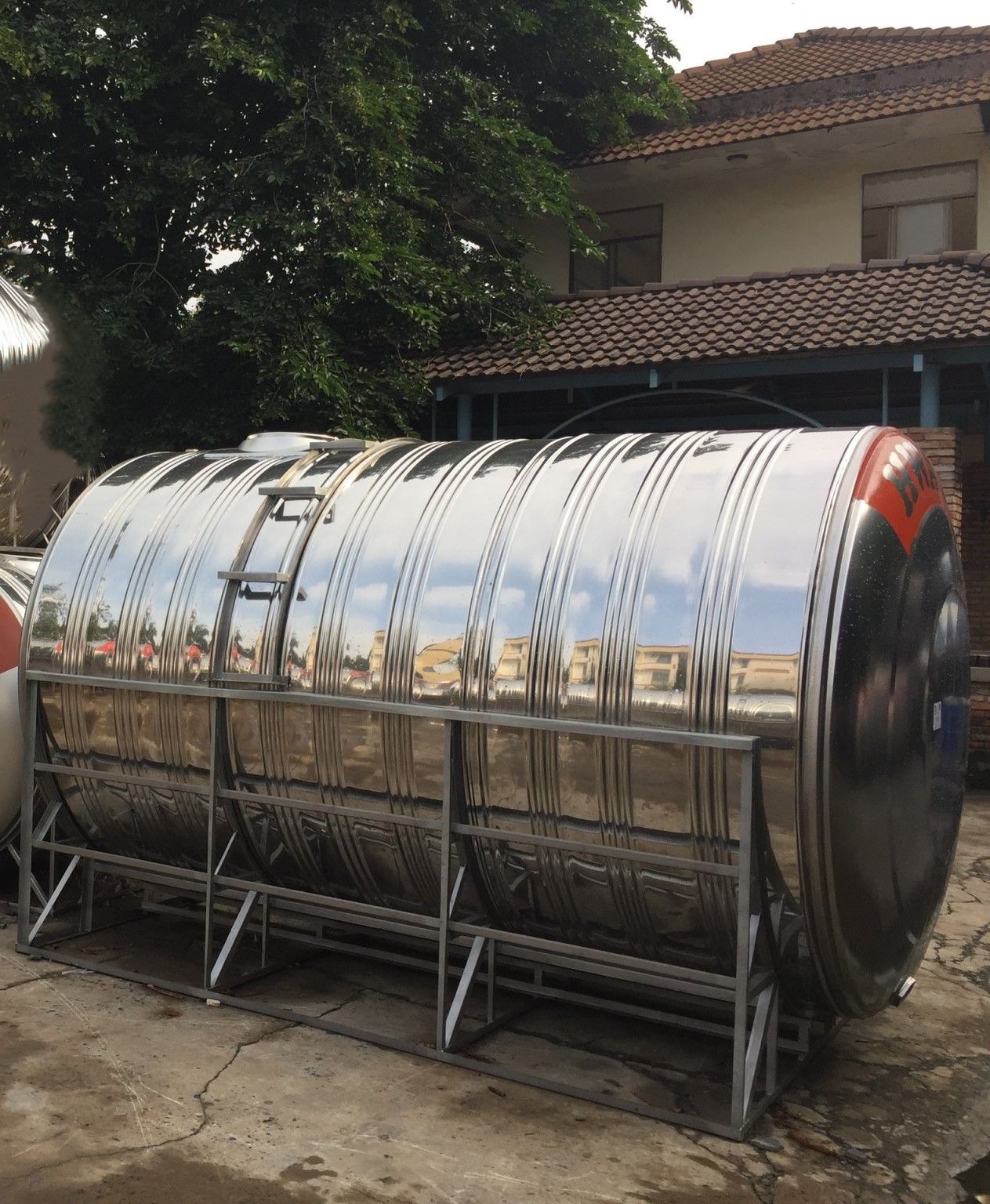 Nhà 4 tầng khá cao nên Quý khách hàng nên sử dụng bồn nước nằm/bồn ngang tốt hơn cả (trong điều kiện có diện tích sân thượng rộng rãi). Bởi bồn ít bị ảnh hưởng bởi gió bão và các bồn inox nằm/ngang luôn dàn đều phần áp lực nên mặt trần, mặt sàn, vững chãi hơn.