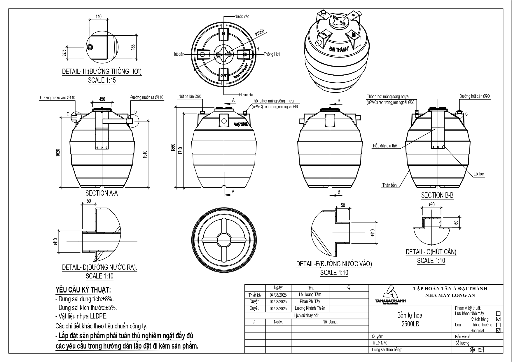 Bản vẽ bồn tự hoại Đại Thành 2500 lít