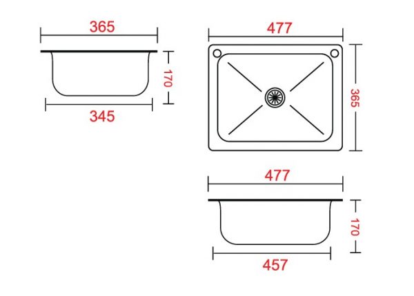 Bảng vẽ chi tiết chậu inox Sơn Hà 1H447