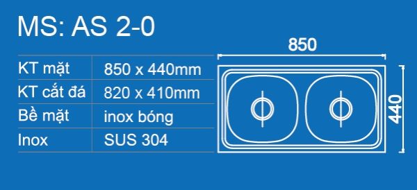4. Thông số kỹ thuật chậu rửa chén inox Toàn Mỹ AS 2-0