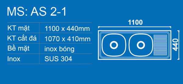 4. Thông số kỹ thuật chậu rửa chén inox Toàn Mỹ AS 2-1