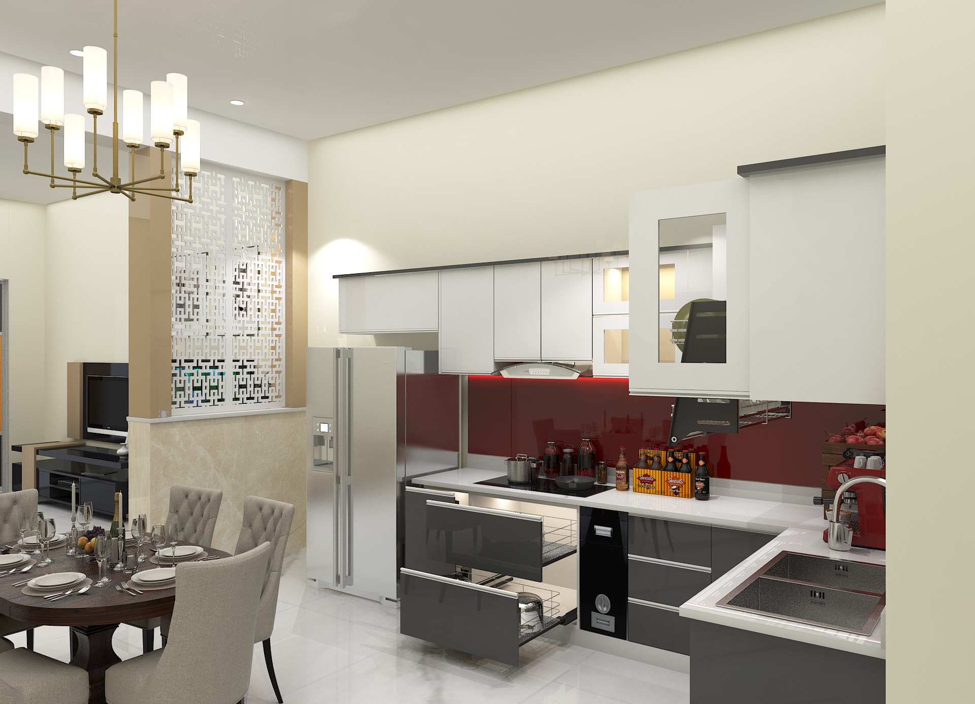 Thiết kế nội thất bếp đẹp và sang trọng hiện đại tủ bếp sơn trắng và bàn đảo bếp veneer vân gỗ