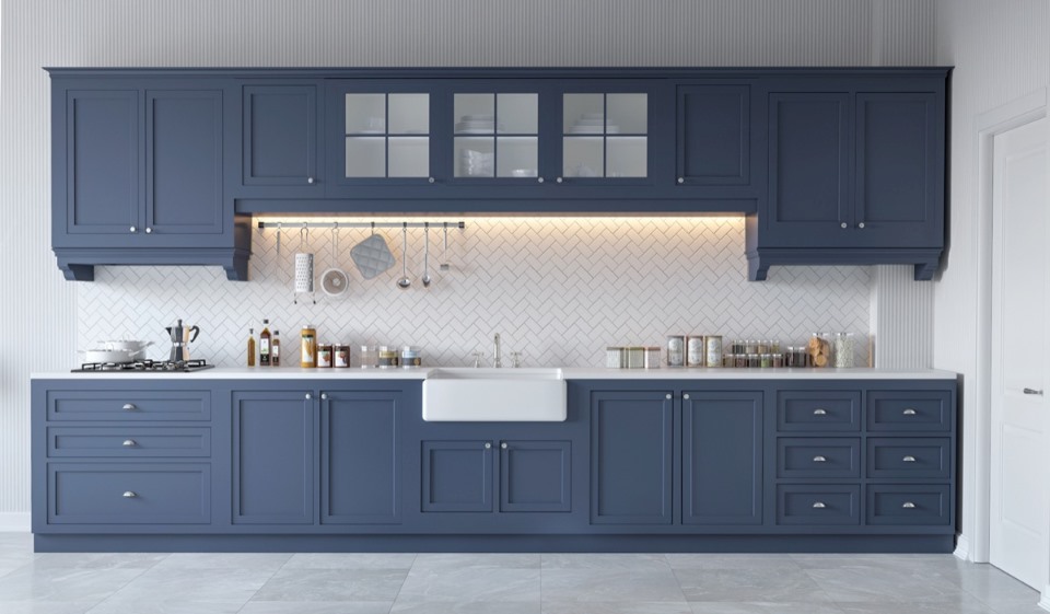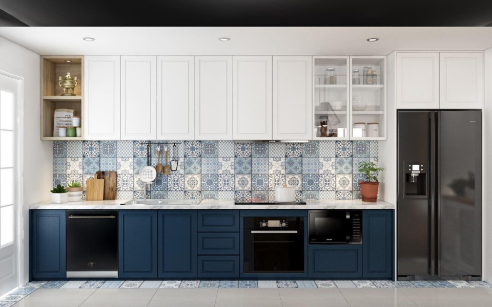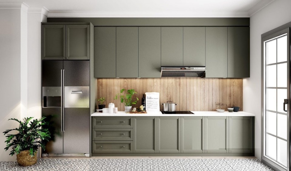 Tủ bếp chữ I sơn phong cách tân cổ điển