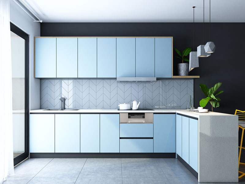 Để làm 1 phòng bếp đẹp và sạch sẽ thì không thể thiếu kính bếp nếu bạn không sử dụng đá ốp. Kính bếp dễ lau chùi khi chiên nấu thức ăn bị bắn vào. Là loại kính cường lực được sơn 1 mặt nên nó thường có màu trơn như xanh dương, xanh ngọc, vàng chanh, xám,… lựa chọn theo màu sắc bạn thích.